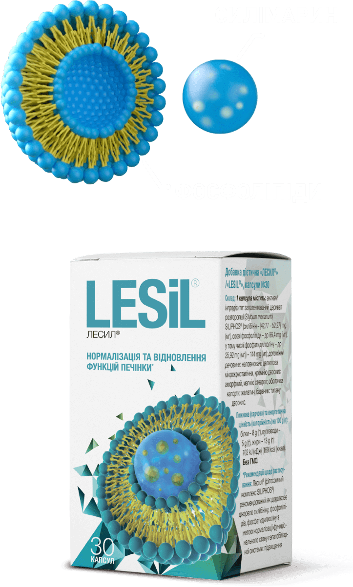 Фосфатидилхолін - компонент ЛЕСИЛ, що позитивно впливає на пошкоджені клітини печінки.